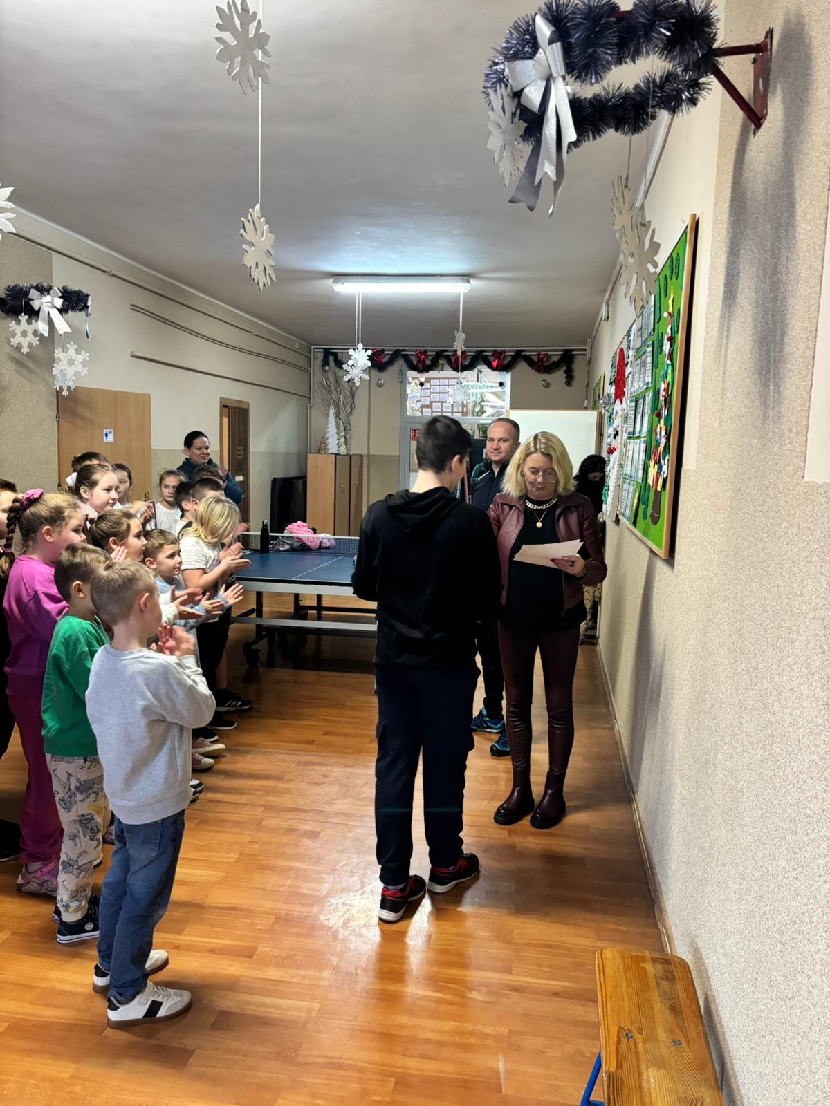 W listopadzie odbył się Szkolny Turnieju Tenisa Stołowego w którym wzięło udział 22 uczniów z klas IV-VIII. Zostali oni podzieleni na cztery grupy. W grupach mecze rozgrywano systemem "każdy z każdym". Wszystkie pojedynki były bardzo zacięte i emocjonujące. Najlepszymi zawodnikami turnieju zostali: