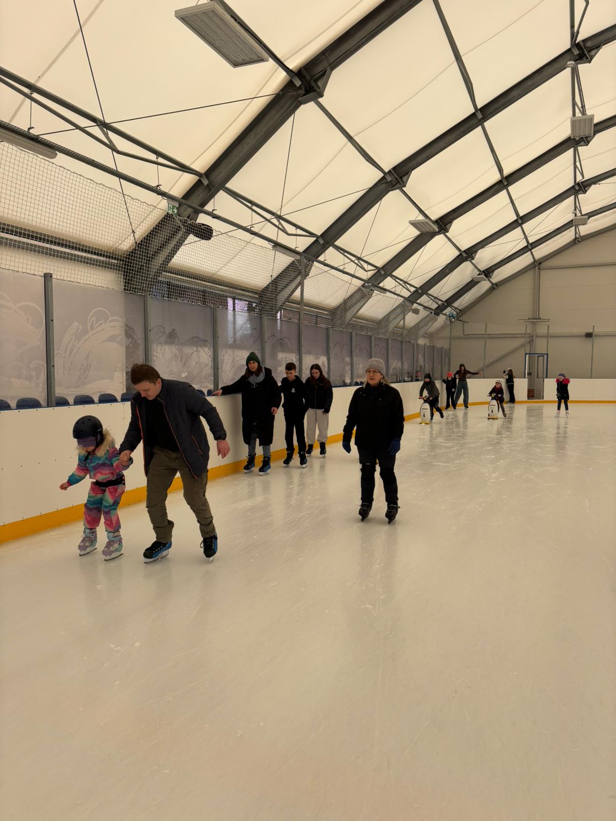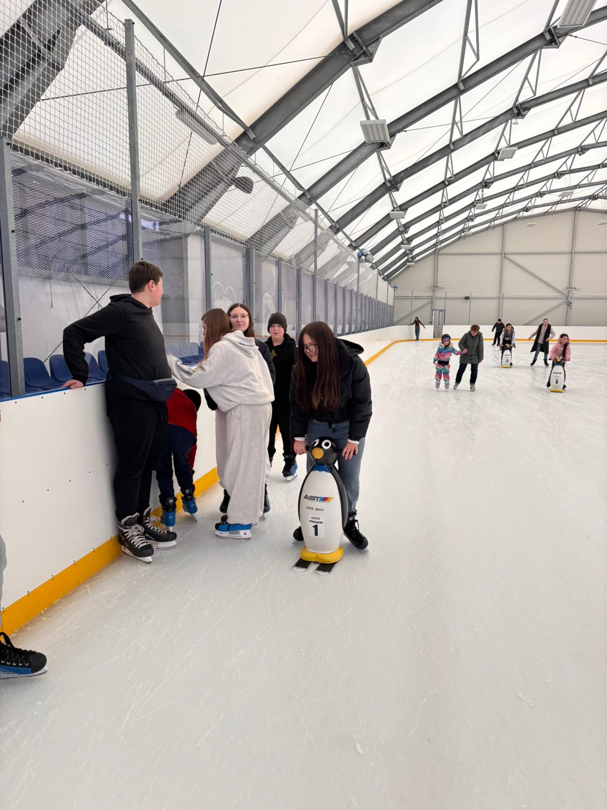 12 lutego 2026 roku uczniowie naszej szkoły wzięli udział w wycieczce na lodowisko do Jasła. Celem wyjazdu była popularyzacja aktywnego spędzania czasu wolnego, doskonalenie umiejętności jazdy na łyżwach oraz integracja uczniów. Już od samego rana wszystkim towarzyszył doskonały humor i sportowe nastawienie. Po przyjeździe na lodowisko i krótkim instruktażu dotyczącym zasad bezpieczeństwa uczniowie rozpoczęli jazdę. Dla wielu była to kolejna okazja do rozwijania swoich umiejętności łyżwiarskich, natomiast niektórzy stawiali pierwsze kroki na lodzie. Nie zabrakło wzajemnej pomocy, wsparcia koleżeńskiego oraz wielu radosnych chwil. Zajęcia na lodowisku były nie tylko świetną formą rekreacji, ale również doskonałym treningiem koordynacji ruchowej, równowagi i wytrzymałości. Uczniowie wykazali się dużym zaangażowaniem, kulturą osobistą oraz przestrzeganiem zasad bezpieczeństwa. Wycieczka przebiegła w miłej i bezpiecznej atmosferze. Wszyscy wrócili zmęczeni, ale bardzo zadowoleni. To był dzień pełen ruchu, uśmiechu i sportowych emocji.